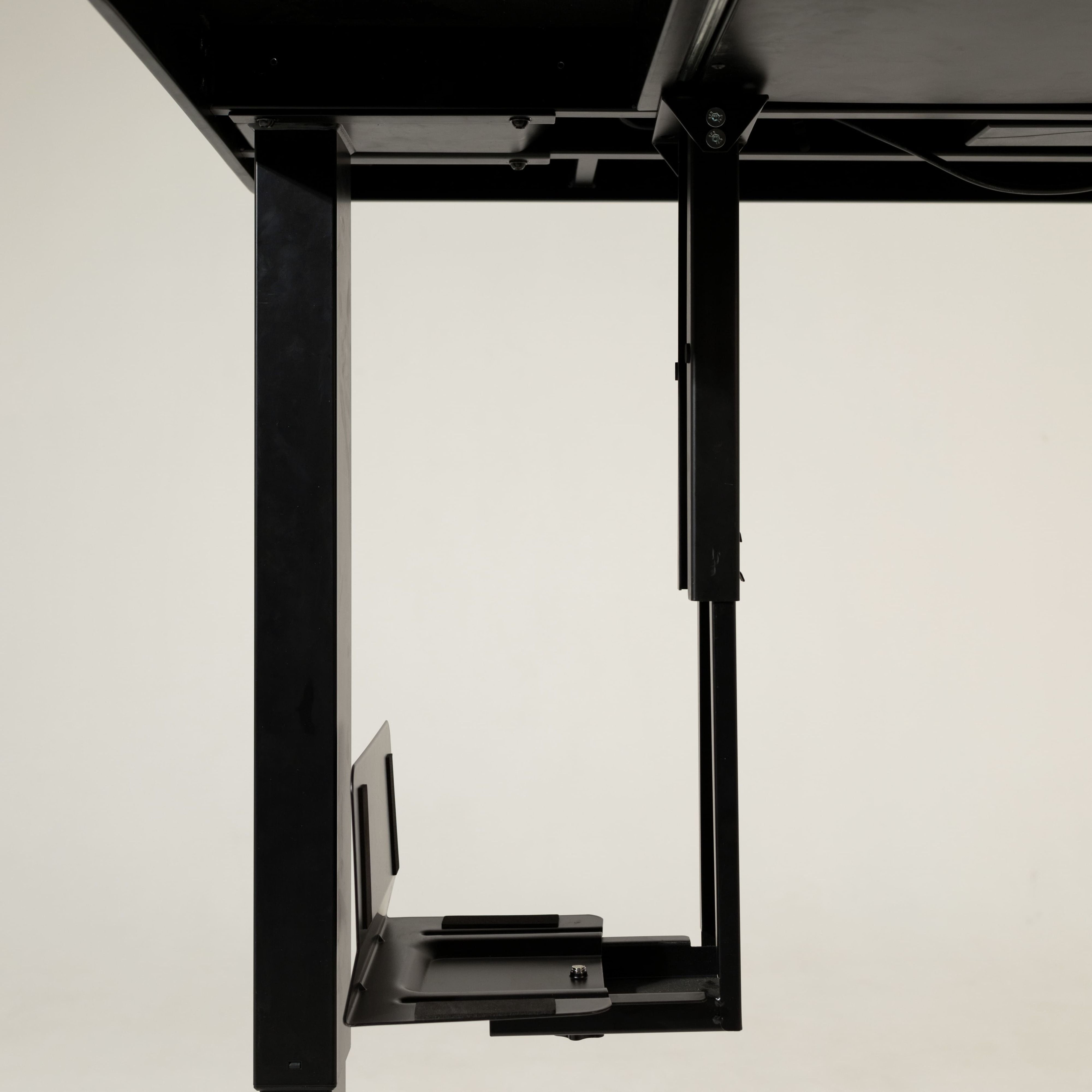 - размещение системного блока в держателе на оптимальной высоте позволяет легко подключать и отключать устройства, предотвращает натяжение проводов при изменении высоты стола