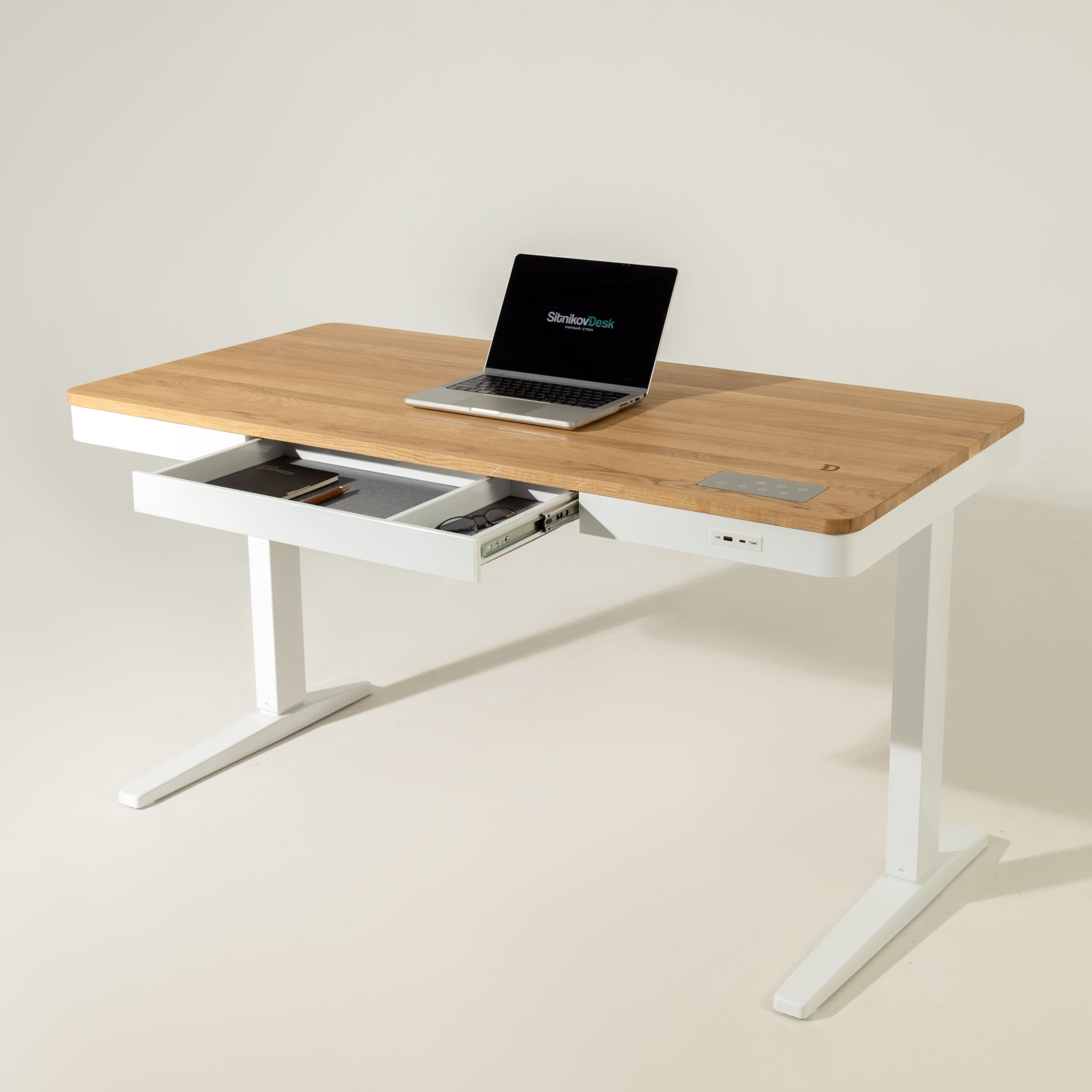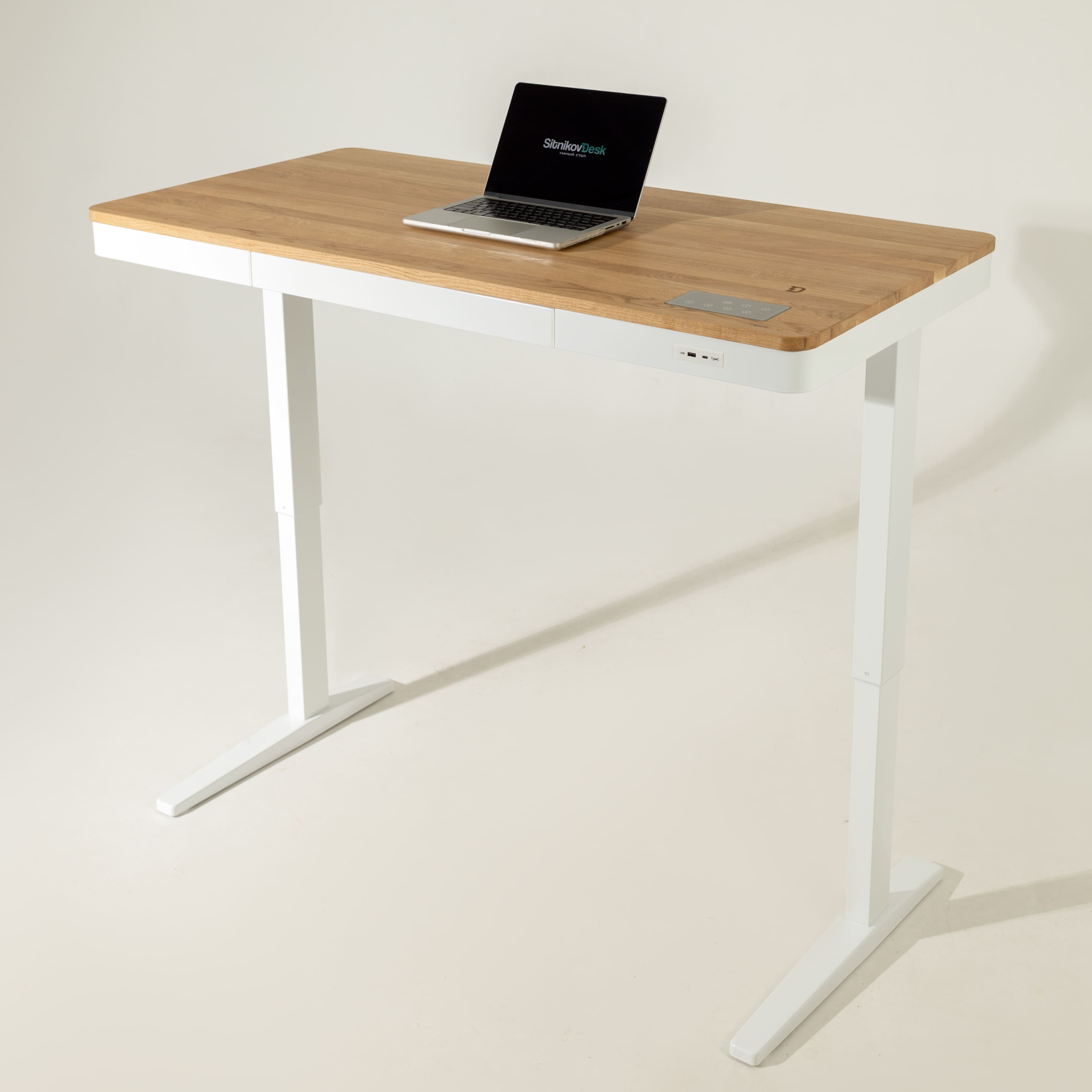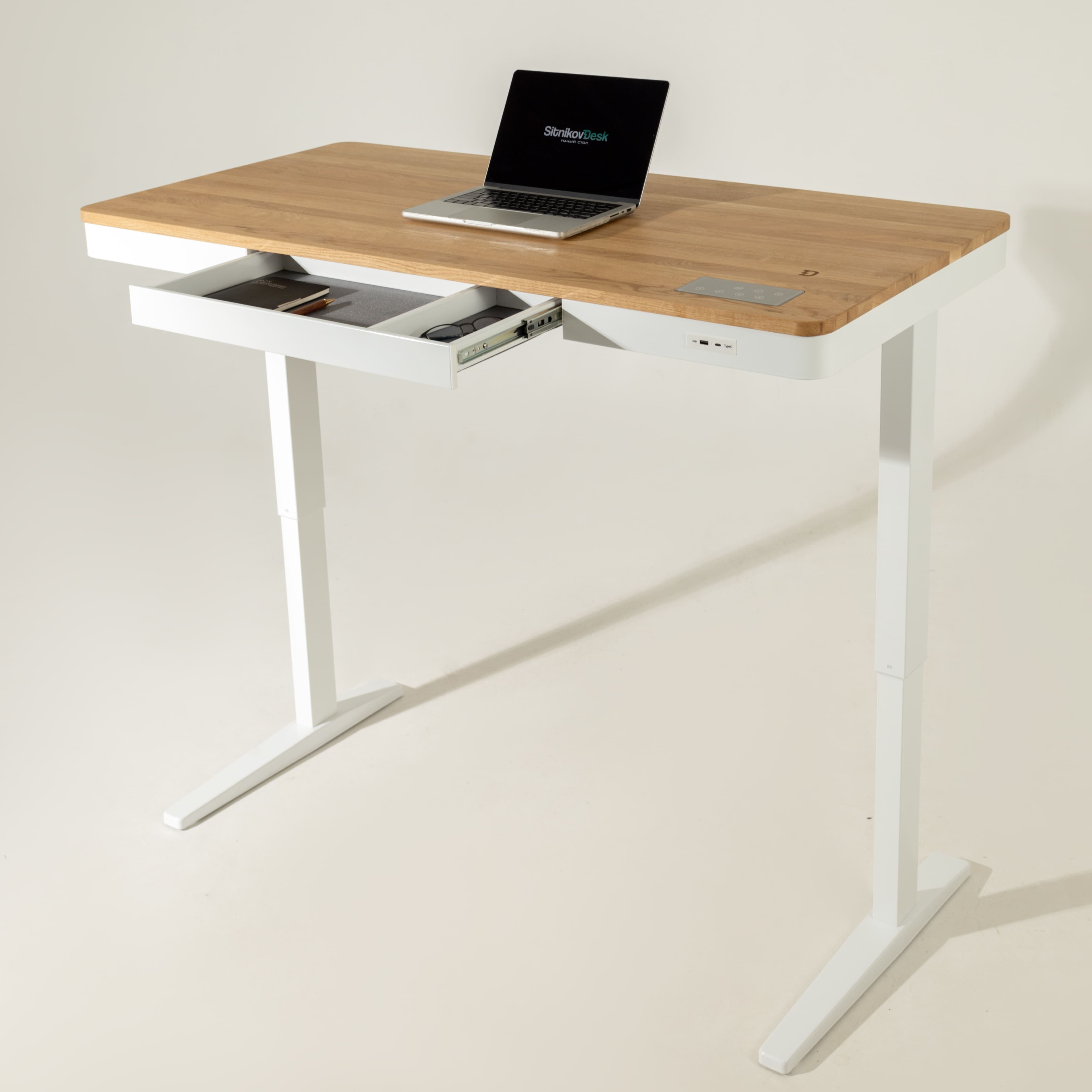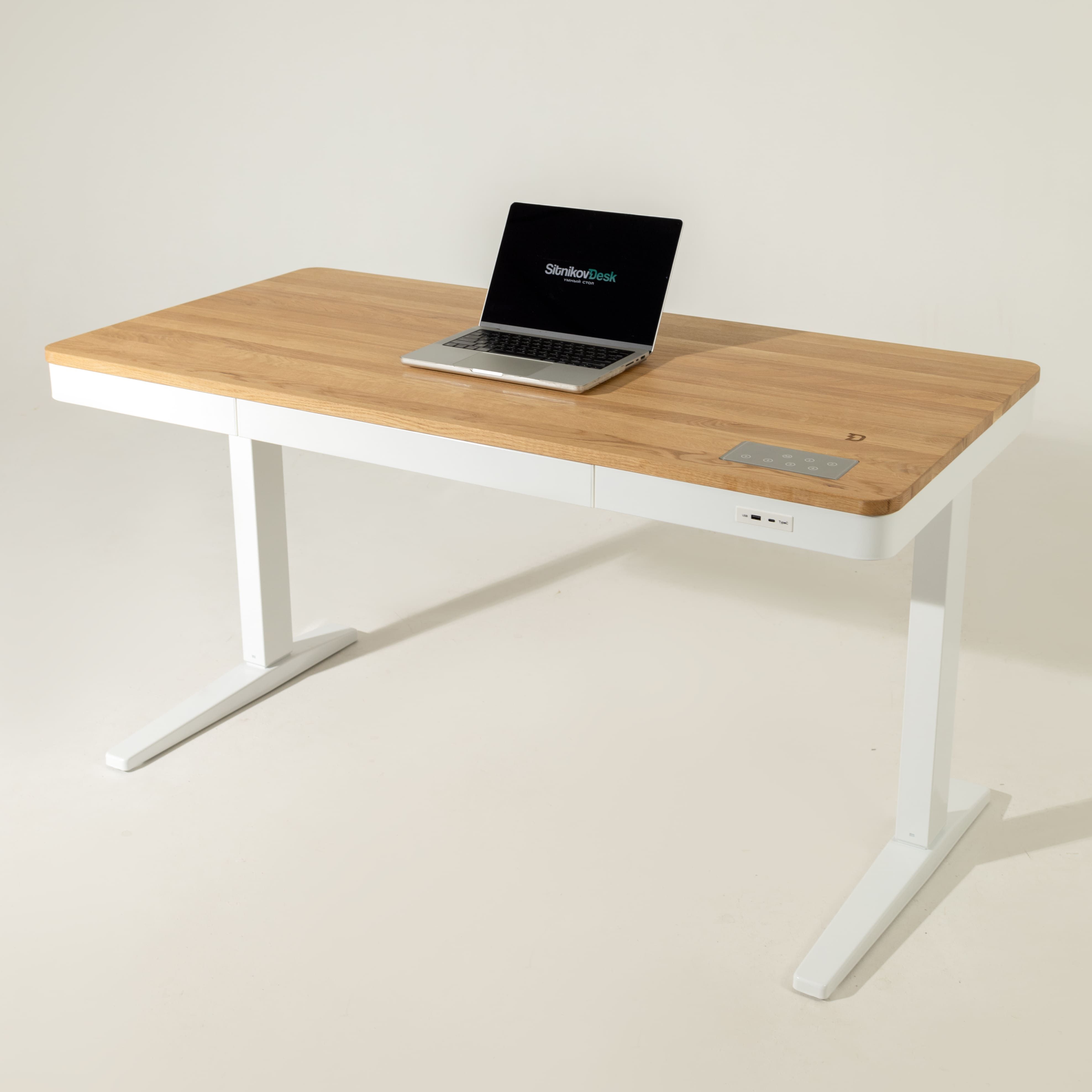 Премиальная электроника: порты Type-C, USB, беспроводная зарядка, интуитивное сенсорное управление запоминает 4 высоты, умная защита от столкновений. Ножки с утолщённой “ступнёй” (лучшая устойчивость). Даже болты под заказ с защитным напылением.