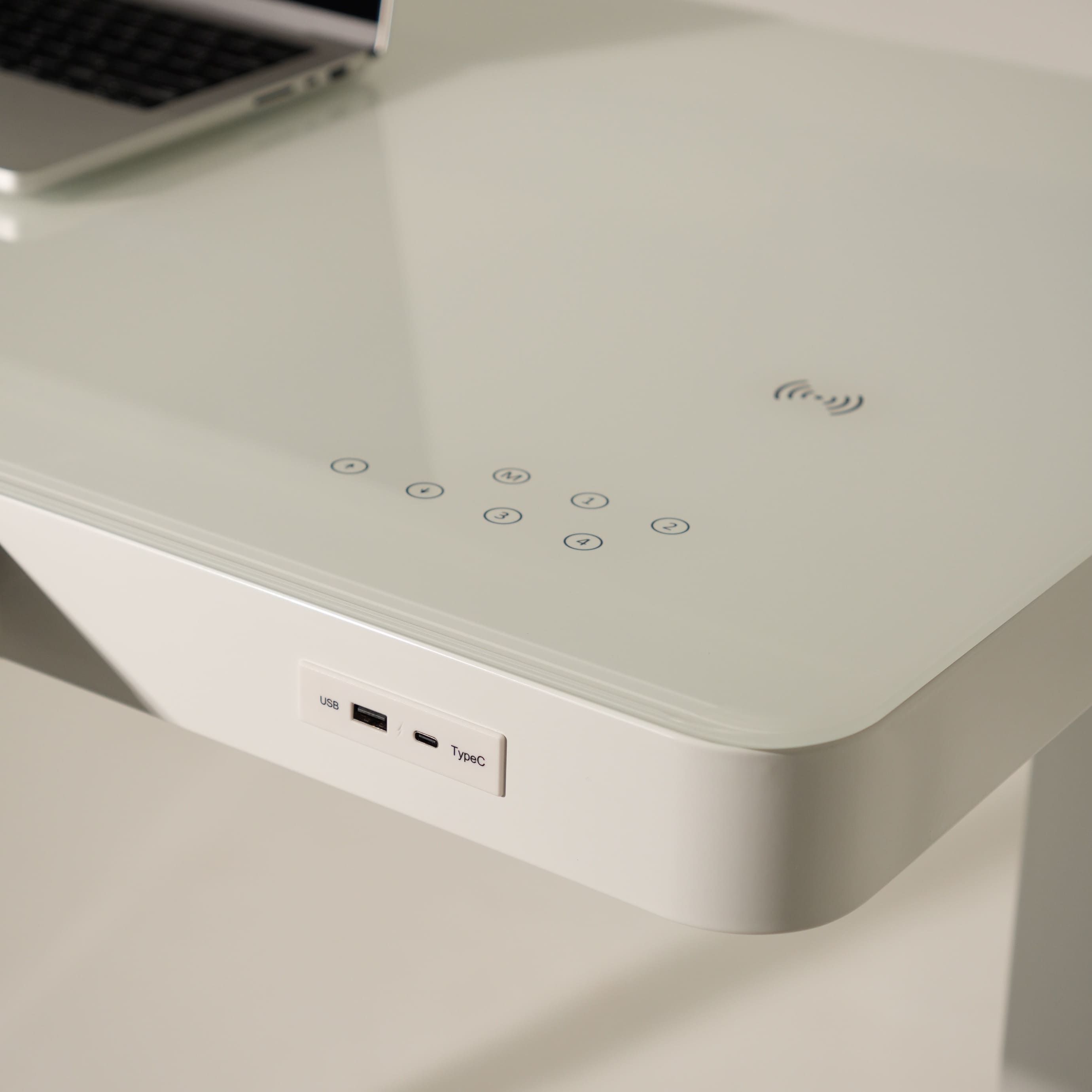 Премиальная электроника: порты Type-C, USB, беспроводная зарядка, интуитивное сенсорное управление запоминает 4 высоты, умная защита от столкновений. Ножки с утолщённой “ступнёй” (лучшая устойчивость). Даже болты под заказ с защитным напылением.